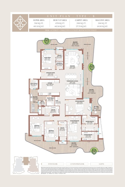 Clove County Noida Expressway, is a small, high-end, luxury project with a small number of apartments. Its comprises 4BHK, 5BHK apartments, hence catering to desire for privacy and elegance.
